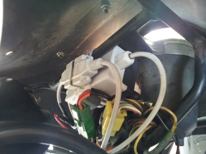 ...(Der kleine weiße Kasten vorne, ist etwas anderes, nämlich ein USB Ladegeräte fürs Navi)