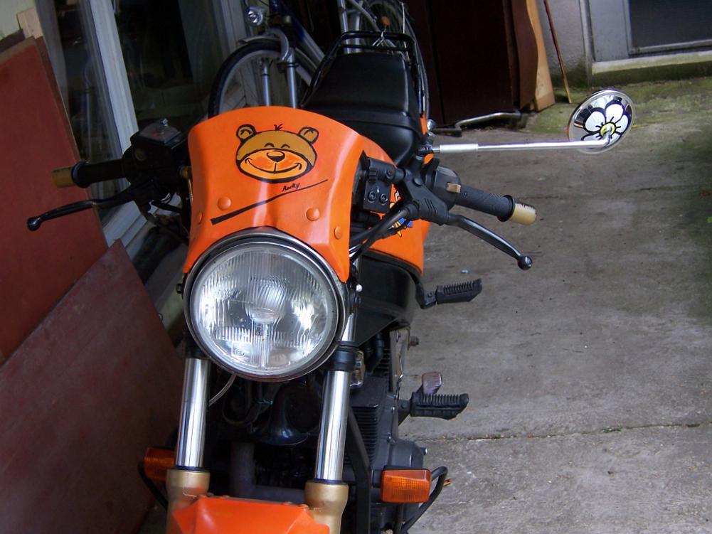Was mir noch aufgefallen ist: dein Winschild (wenn man es so nennen kann). Habe gerade die Woche meine Puig wieder abgenommen, weil ich sie zu globig fand...aber so ganz ohne Scheibe...