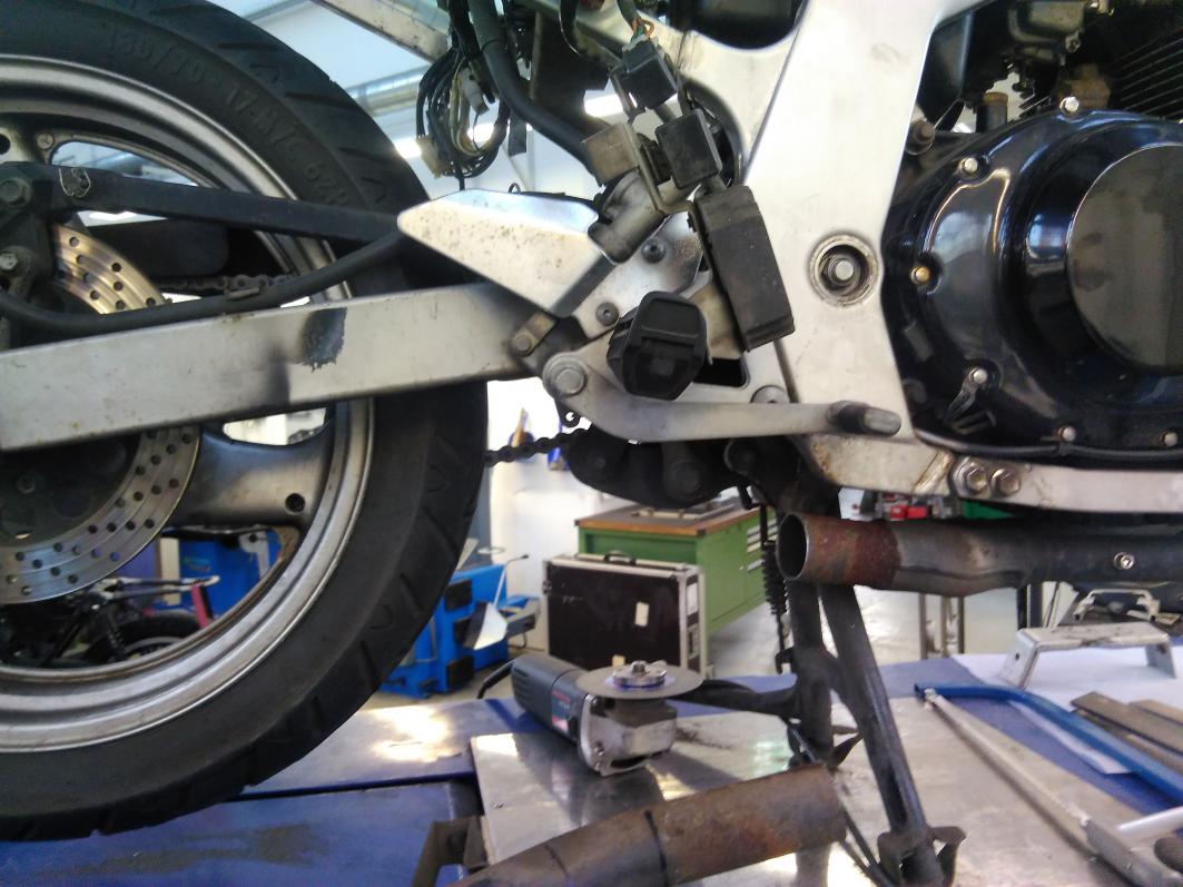 Wegen dem Auspuff find ich ne nette Idee aber teste erstmal der könnte schnell schleifen so tief, wie er jetzt sitzt. Nicht das es dich aus der Kurve hebelt. Bin gespannt was drauf wird ! =)