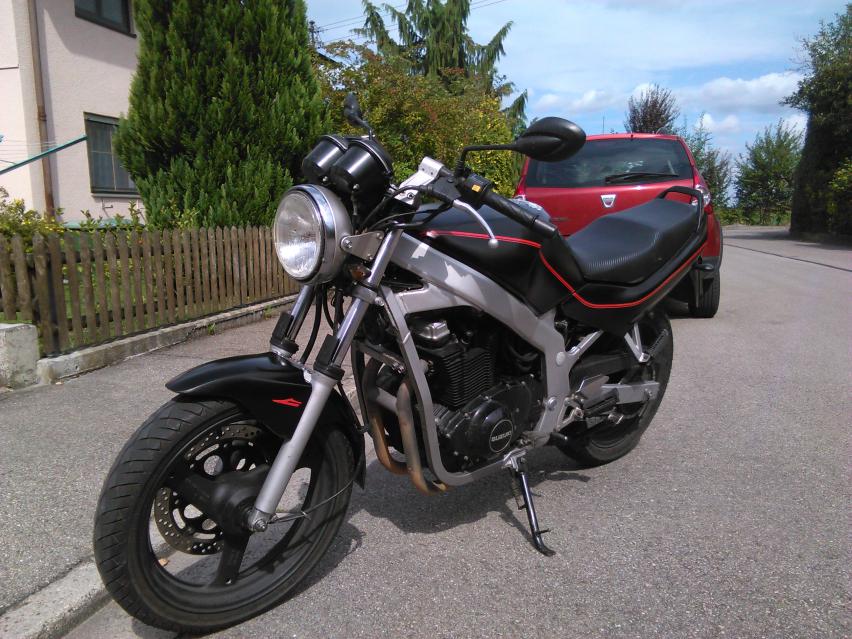 Wenn Streifen, dann von vorne nach hinten mittig über den Fender und den Tank oder so https://upload.wikimedia.org/wikiped...uki_GS500E.JPG |