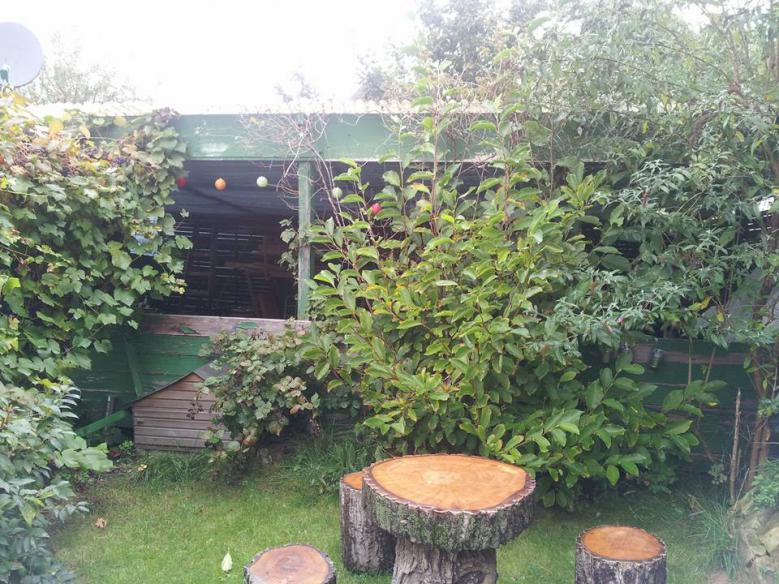 Wir haben im Garten eine sehr schöne, überdachte Terrasse, die sich eigentlich perfekt für die Einrichtung einer Werkstatt- und Schrauberecke eignet. Sie ist groß, betoniert, sehr gut beleuchtet (bzw. beleuchtbar - daran arbeite ich gerade), sehr gut zugänglich und logischerweise mit der Hütte direkt nebendran.