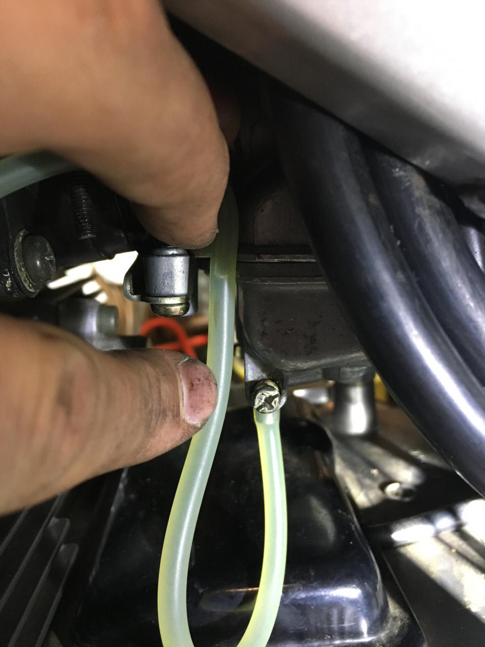 Bild 2. Zeigt den Stand nach dem Einbau, ohne den Motor laufen zu lassen + Benzinhahn auf Pri, auf dem Hauptständer (linke Vergaserseite)