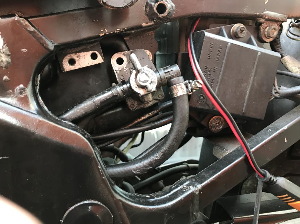 Also der Schlauch kommt vom Benzinhan am hinteren Anschluss also die dünne Leitung. Habe auch zwischen den vergasern geschaut aber kein passenden Anschluss gefunden in der Größe. |