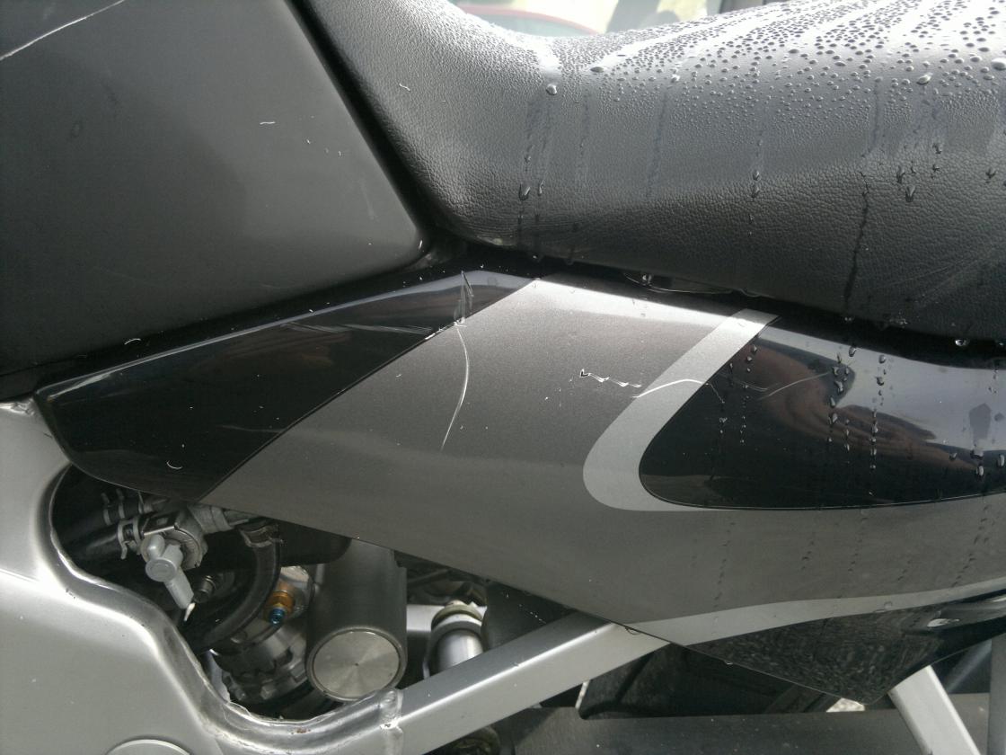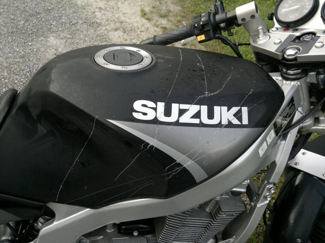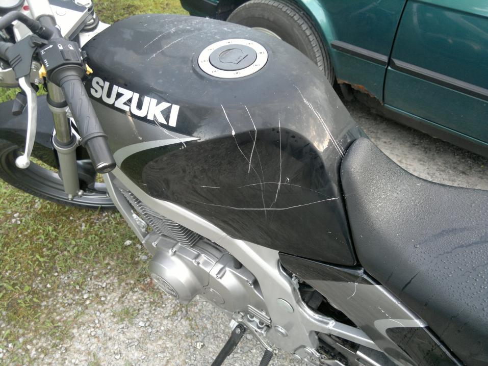 ja war dumm, aber da nun fotos schon gemacht wurden von mehreren leuten, polizei, suzi händler und zeugen, denke ich , dass ich die kratzer nun ein wenig anschleifen kann um richtig rostbehandlung und vorsorge betreiben kann.