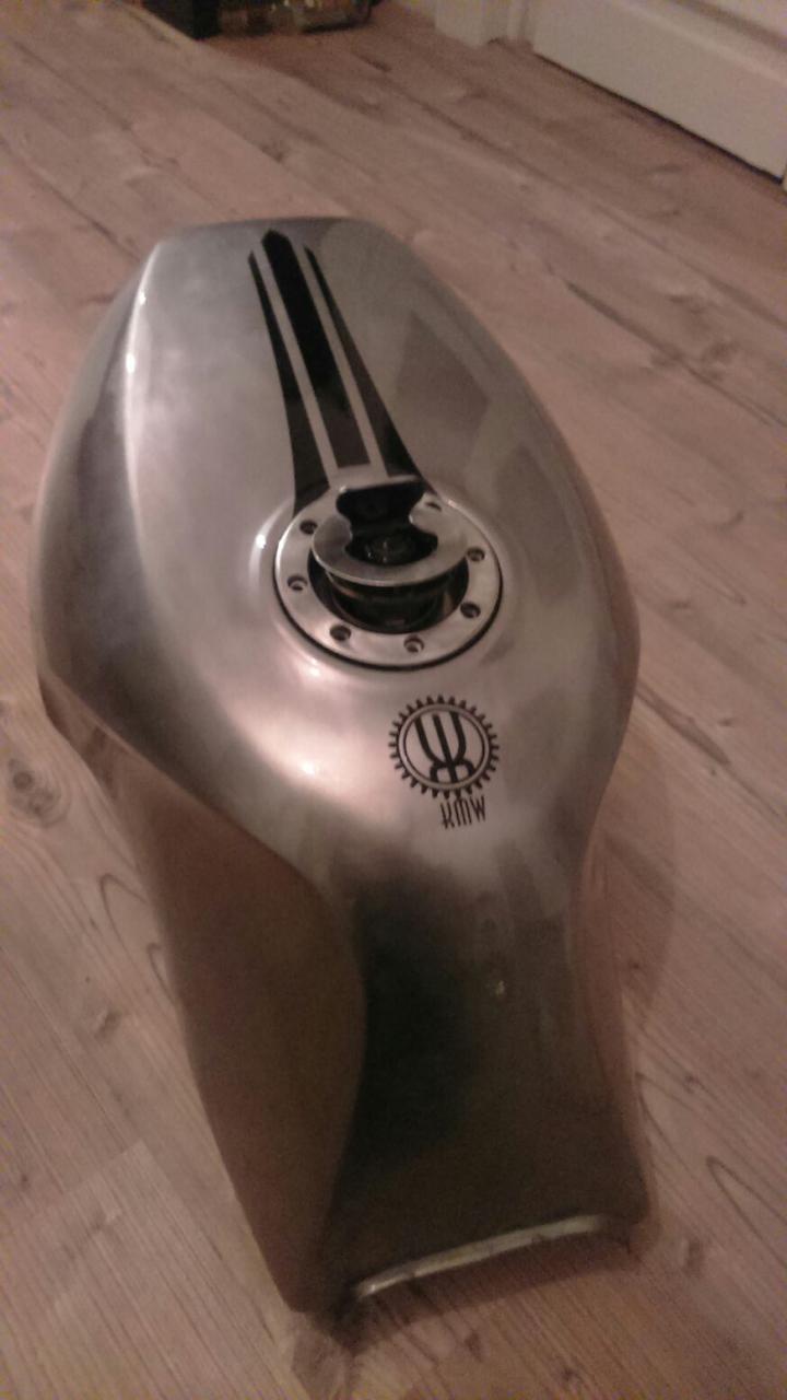 Erstmal die Kiste gefleddert und den Motor zur weiteren Behandlung entnommen. Da sollen die Ventile eingestellt werden und die Seitendeckel poliert werden...mal den Tank aufgelegt,- ich glaube Hochglanzschwarzer Rahmen wird zum Tank passen. Nur mim Heck bin ich immernoch nicht schlüssig. Die Befragung des TÜVs wurde outgesourced,- vielleicht erreicht mein Kumpel was bei den Männern in Blau bezüglich der Rahmenheckänderung...