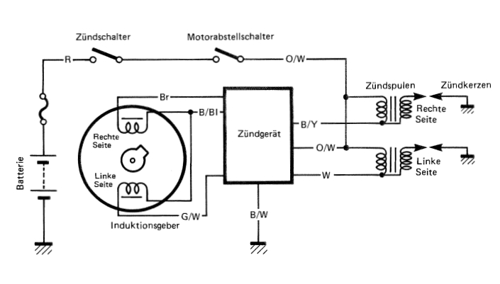 Wenn es das nicht ist, und du immer noch auf einer Seite keinen Funken hast, bleibt nur noch die Verkabelung von der Zündbox bis zur entsprechenden Zündspule.