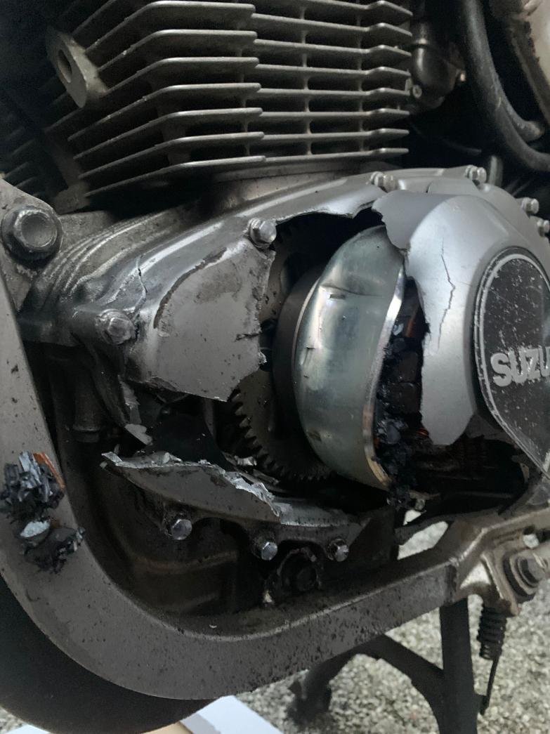 Der Generatordeckel ist komplett zerbrochen und der Generator da drunter, den kann ich auch vergessen.