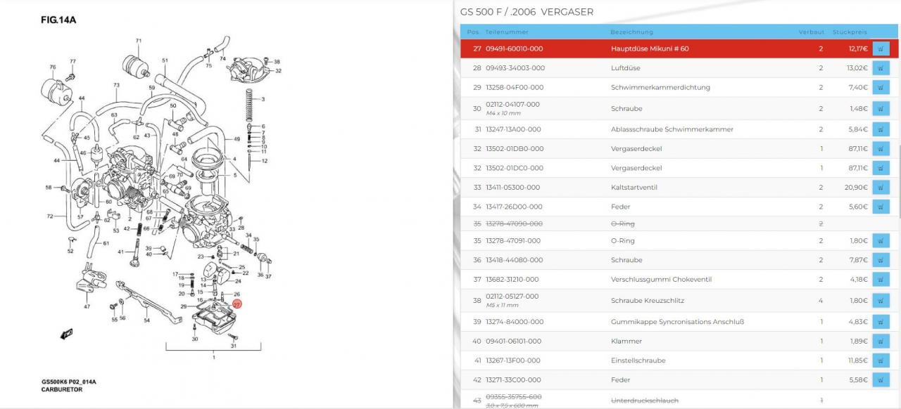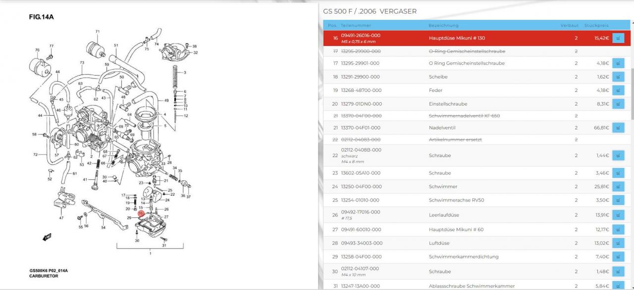 weiß jemand welche Düsengrößen in den GS500F Baujahr 2006 Vergasern verbaut sind? -