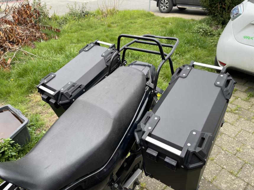 Gepäckträger montiert, nicht schön aber praktisch und war ein Schnäppchen. Jetzt noch die Alukoffer ordern und platzmässig sollte das reichen. Nächste Woche wird denke ich mal lackiert.