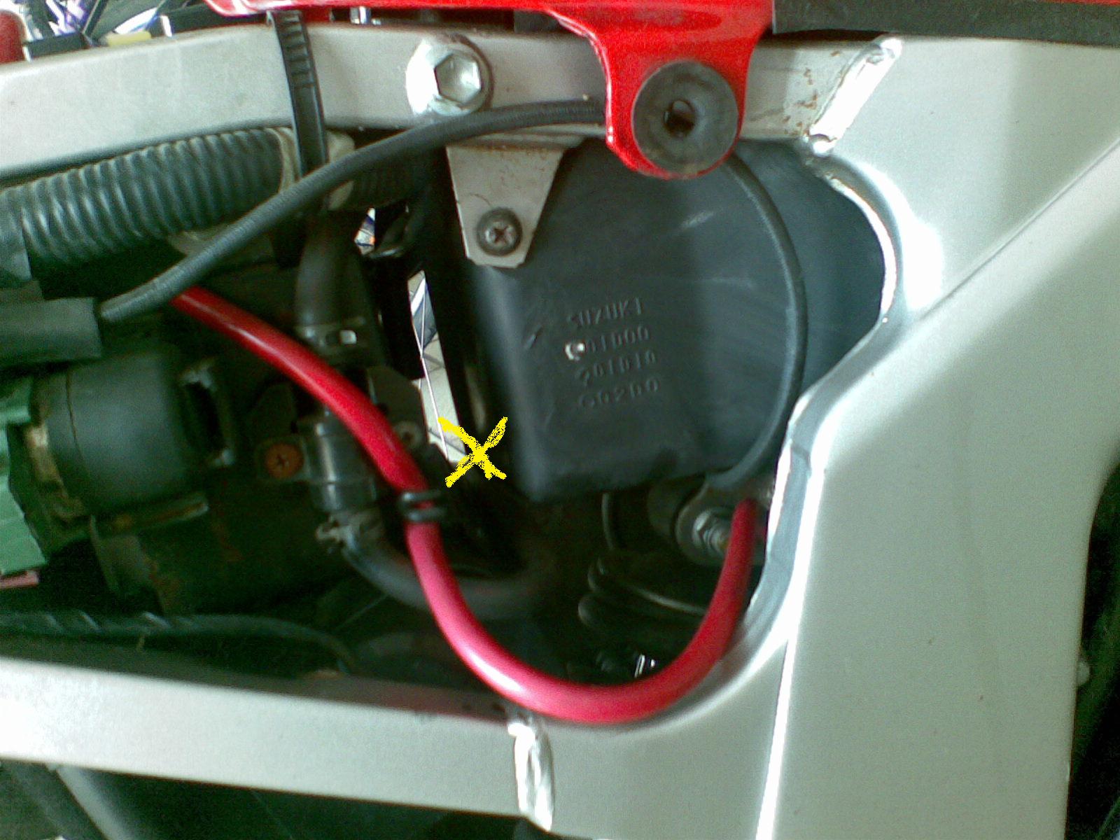 Die Sicherung sitzt unter der rechten Heckverkleidung neben dem Anlasserrelais.