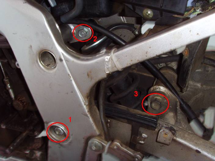 ich wechsele gerade den Kettensatz an meiner GS. Das Hinterrad habe ich inzwischen ausgebaut. Das erste Problem ist, dass ich das Kettenrad einfach nicht von Hinterrad losbekomme. Die Schrauben sind einfach irgendwie so fest, dass nichteinmal voller Körpereinsatz hilft. Ok mein Hebel ist derzeit nur etwa eine Handspanne, brauche ich da die 1 Meter langen Monster um die paar kleinen Schrauben zu entfernen? mit welchem Drehmoment sind die Festgezogen? Das zweite Problem ist die Schwinge. Wie bekomme ich die ab. Ich hab ein Foto von der Situation angehängt. Welche von den drei Schrauben muss ich in welcher Reihenfolge unter beachtung von welchen Sachen lösen? Auch hier bekomme ich mit meiner kleinen Ratsche nicht vorwärts. Vor allem wie soll man an Schraube 2 kommen. welches Werkzeug ist so lang dass man es durch das loch einführen kann? und zuletzt noch eine Frage. kann man die Kupplung irgendwie dazu bringen, dass sie noch einen hauch weiter öffnet? ich habe bisher den Kupplungszug eingestellt, dass die Kupplung nur noch 1 cm spiel hat, aber ich bin noch nicht ganz zufrieden mit der Trennung (ausgeschalteter Motor + eingelegter Gang + gezogene Kupplung = wiederstand) Gruß, kamulos |