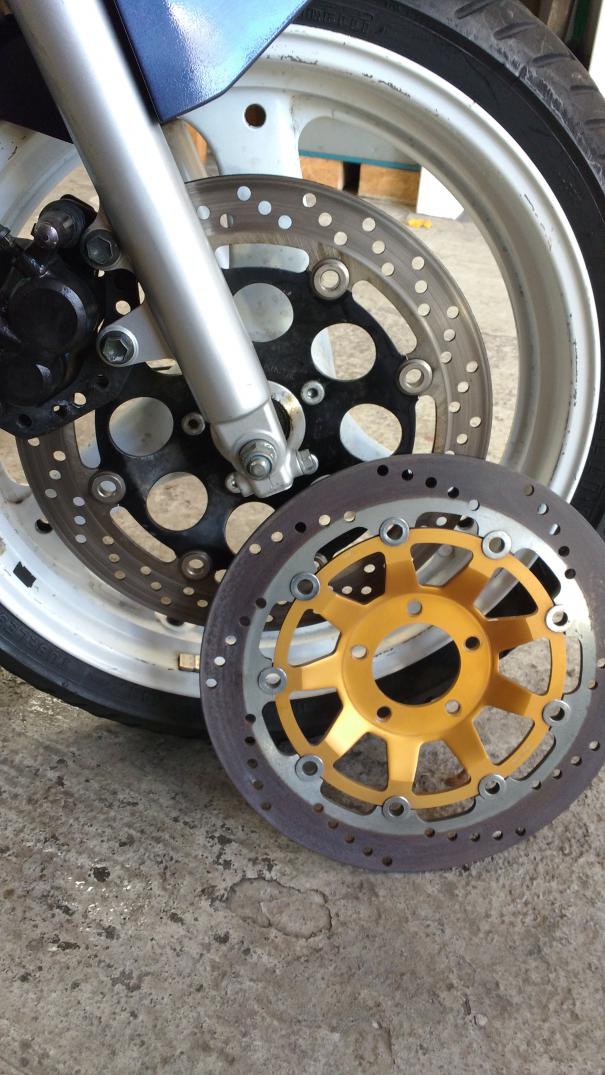 Ich möchte die, auf dem Foto, nicht montierte Bremsscheibe verwenden. Finde sie schöner. Kann ich diese ohne weiteres verwenden? Das einzige, was mir aufgefallen ist, das die mit dem schwarzen Innenteil normal schwimmend gelagert ist. Während die Eloxiertem zwar das gleiche Spiel hat, aber nicht frei ist.