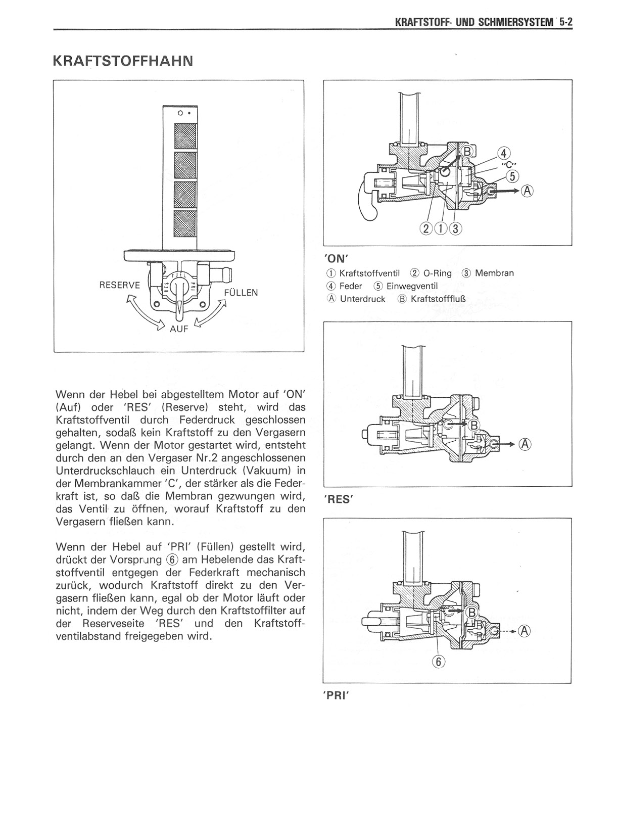 Benzinhahn: Was macht ON / RES / PRI? Montage-Benzinhahn?