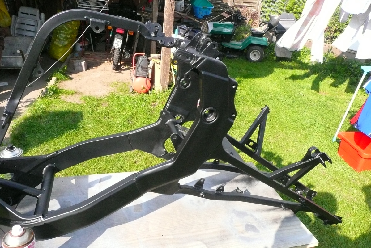- Rahmen und schwinge entrosten und lackieren (Schwarz). ---------Erledigt