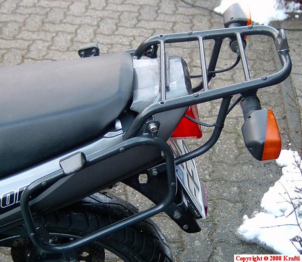 neu kosten die Teile ca. 90 € http://www.jfmotorsport.de/shop2k5/cata ... ts_id=1109 Meinen hab ich mal bei Ebay geschossen. Anbau ist leicht. Bei den meisten Trägern erfolgt die Verschraubung an der Befestigung für den Soziushaltegriff, mit Abstützung hinter dem Kennzeichen und / oder am hinteren Hilfsrahmen.