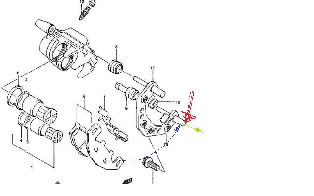 Teil #11 so weit rein drücken wie möglich. Notfalls hängst du den Belag erst an der einen Seite aus, drehst ihn aus dem Sattel und nimmst ihn dann komplett raus. Du kannst das nicht abziehen. Da steckt der Belag drin |