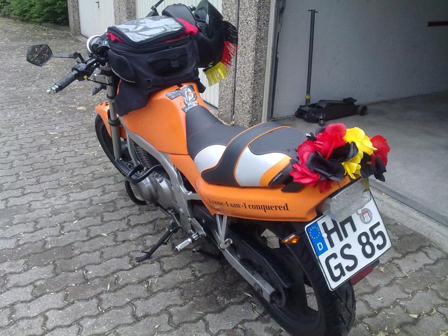 Ein echtes Unikat, was du da fährst; Ein echter Eye-Catcher... ;D - Sieht nach Vorbereitungen für eine längere Tour aus.