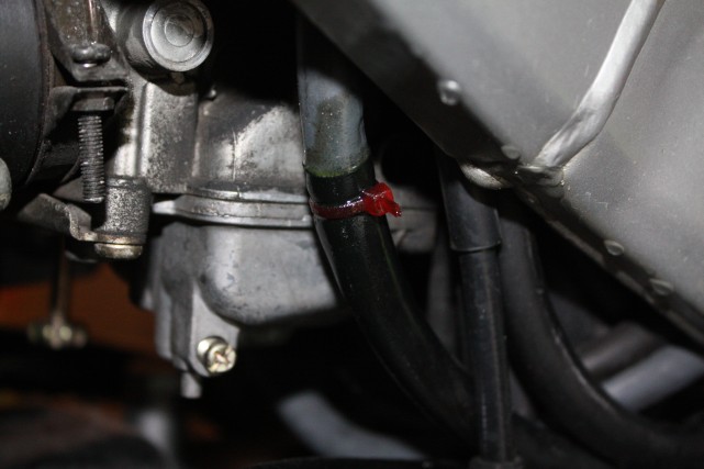 Hab bemerkt, dass aus dem Reserve-Schlauch kurz vorm Benzinhahn Benzin raustropft. Anfänglich bissl mehr, hab dann einen Kabelbinder drum herum getan. Nun merkt man am Motorblock kein Benzin mehr, nur mehr der Schlauch selbst is bissl feucht.