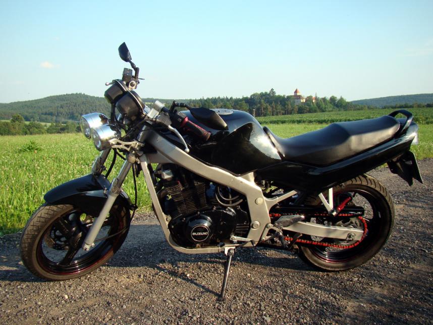 Suzuki GS 500 E GM51B Bj. 1990 – 22.000 km Umbauten / Änderungen: - Höherlegung - Progressive Gabelfedern + 15er Öl - Stahlflex komplett - Rahmen schwarz - Signalroter Lack - Gabel golden lackiert - Rücklichtumbau (noch nicht ganz fertig) - Miniblinker - neue Griffe - Lenkerendenspiegel - Gabelbrücke poliert - Tankdeckel poliert - Felgenbetten poliert - Sitz neu gepolstert und bezogen - neuer Schalldämpfer - Unterbodenverkleidung abgesägt |