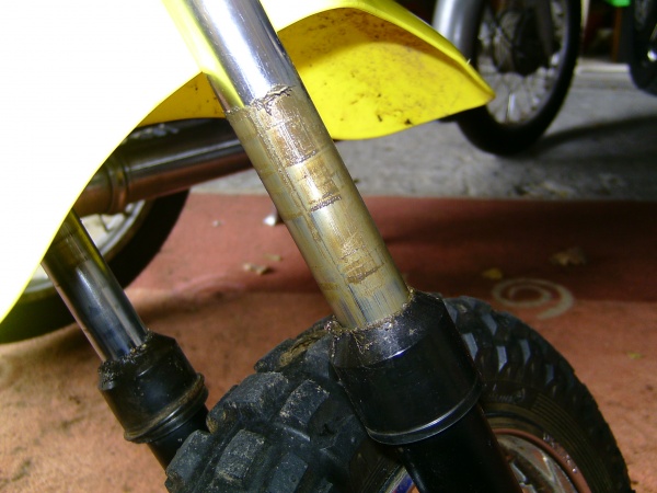 Die Telegabel von dem kleinen Knalltakter macht mir aber im Moment etwas Sorge, sie ist wohl laut der Aussage eines Spezialisten original ohne Dämpfung konstruiert, lediglich ein "elastisches Element" sorgt für eine Federung und eingepresstes Fett soll angeblich dämpfen (macht es aber nicht, dafür verschmiert es immer schick die Standrohre). Da das Wetter momentan noch gut ist, kann ich die Gabel noch nicht zerlegen, das gibt dann Tränen...