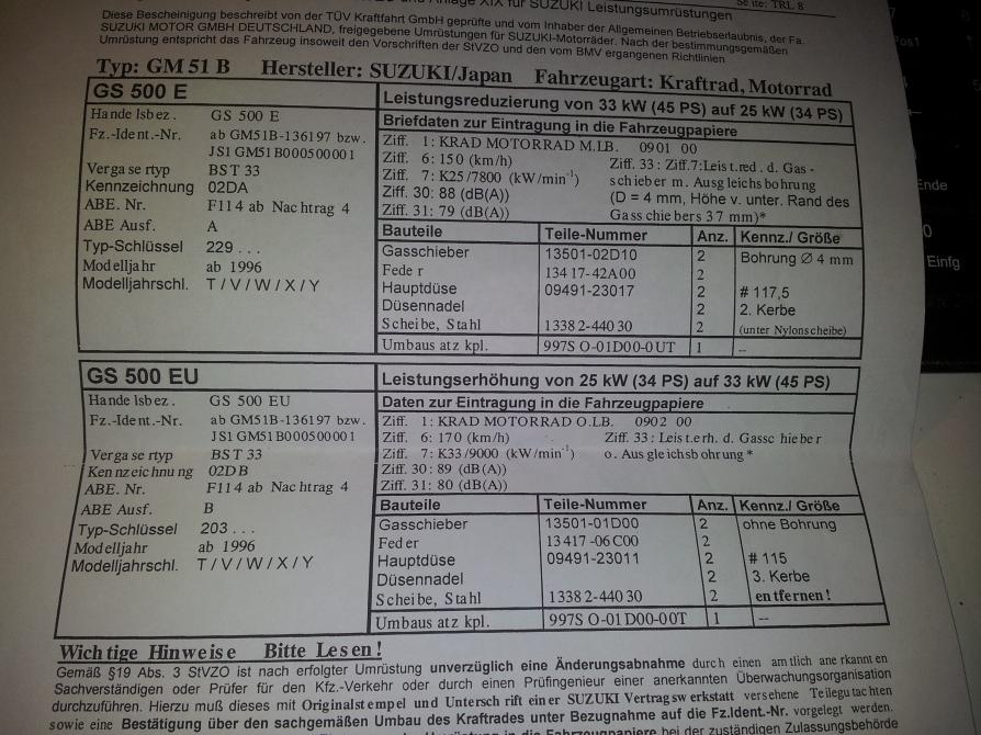Ich habe meine Suzuki BJ.1996 vor 2 Wochen in die Werkstatt gebracht zum entdrosseln und Vergaser synchronisieren.