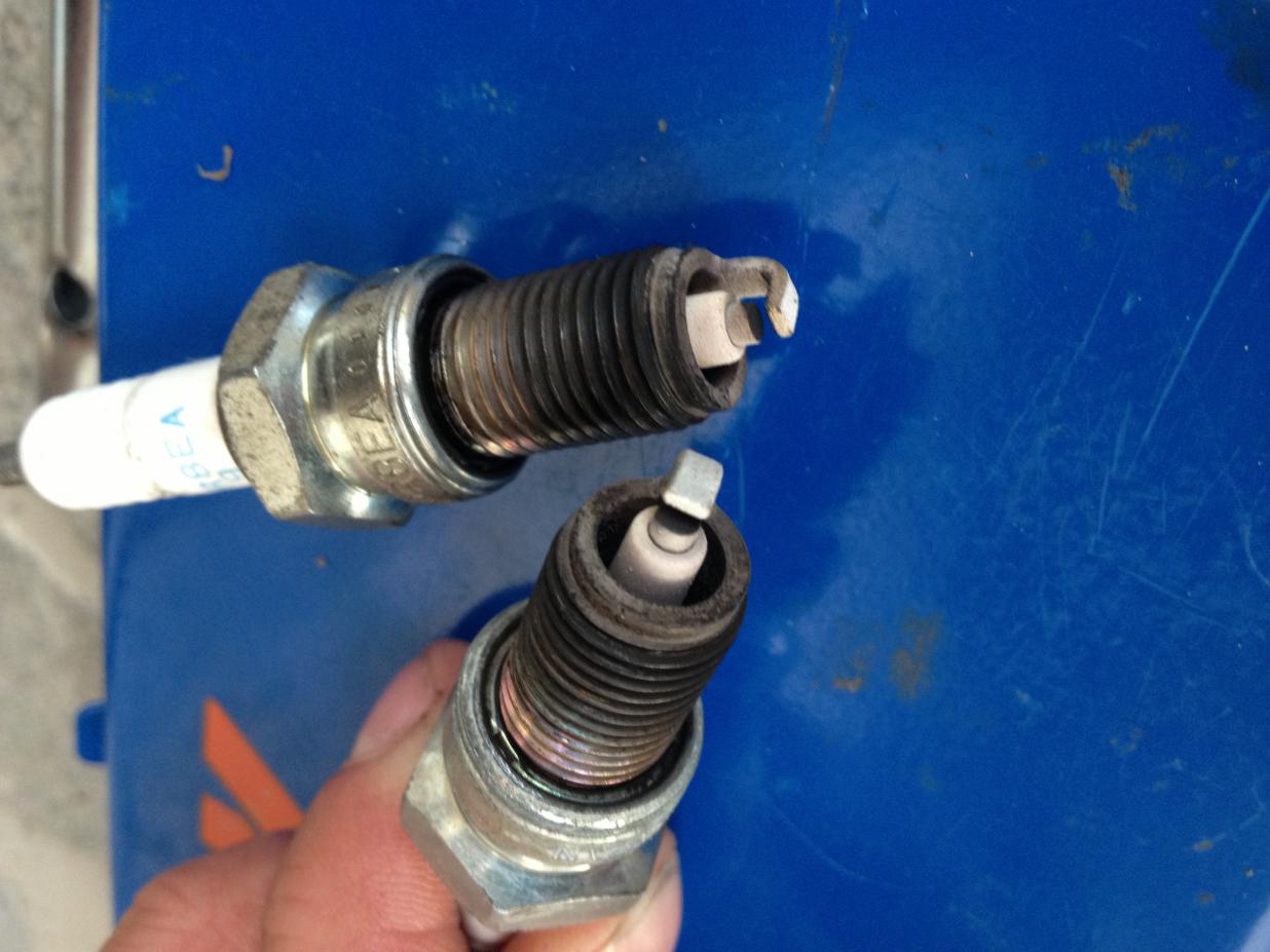 Hab Zündkerzen gewechselt und festgestellt, dass sie deutlich zu mager läuft. (Siehe Bilder)