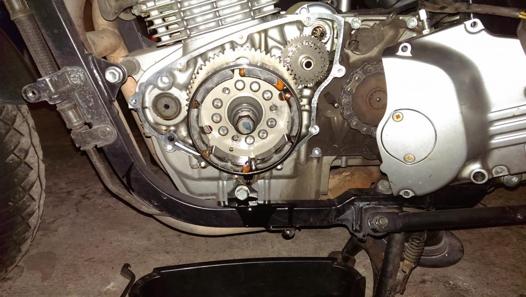 Lima Deckel runternehmen (in Fahrtrichtung links). Dann siehst du schon den Magnetrotor. Dahinter ist das Freilaufzahnrad - das meinte ich. Sieh dir die Explosionszeichnung an (besser wäre ein Werkstättenhandbuch). http://www.alpha-sports.com/suzuki_p...q=suzuki-parts Aha - du hast es schon zerlegt.... der Magnetrotor muss runter - der Freilauf dürfte hinüber sein......das Zahnrad darf kein so hohes Spiel haben. |