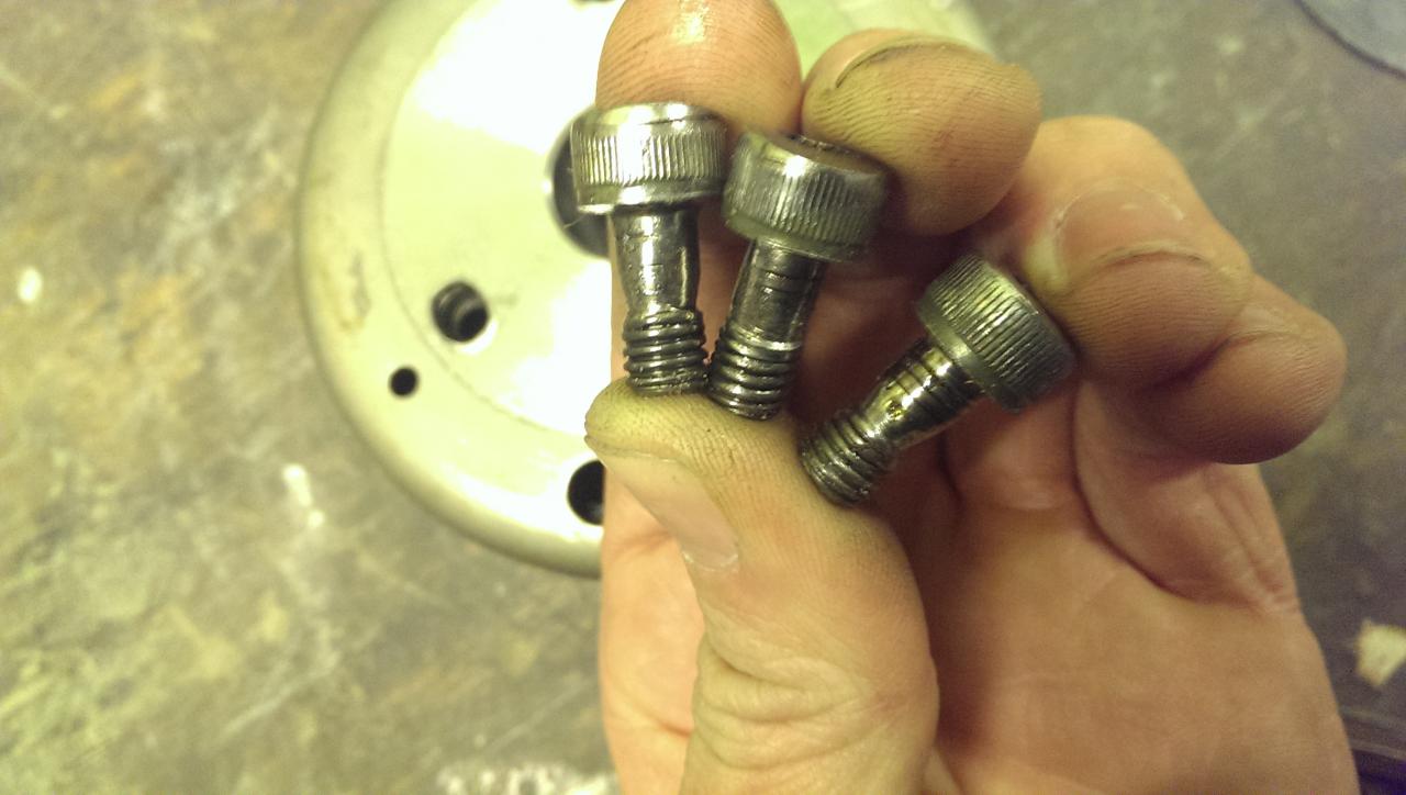 Das sieht seltsam aus. Scheint so als wurden die Schrauben gewaltig überdehnt - entweder schon durch die Montage oder es hat mal was blockiert.....