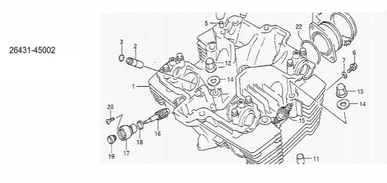 Bauteil Nr16 in der Skizze (nebenstehend die Suzuki Teilenummer) Du kannst zu Testzwecken die Antriebsschnecke ausbauen und das Loch provisorisch verschließen wenn du den Motor ohne Drehzahlmesserantrieb laufen lässt und das Geräusch dann verschwunden sein sollte weißt du jedenfalls genau woher es kommt |