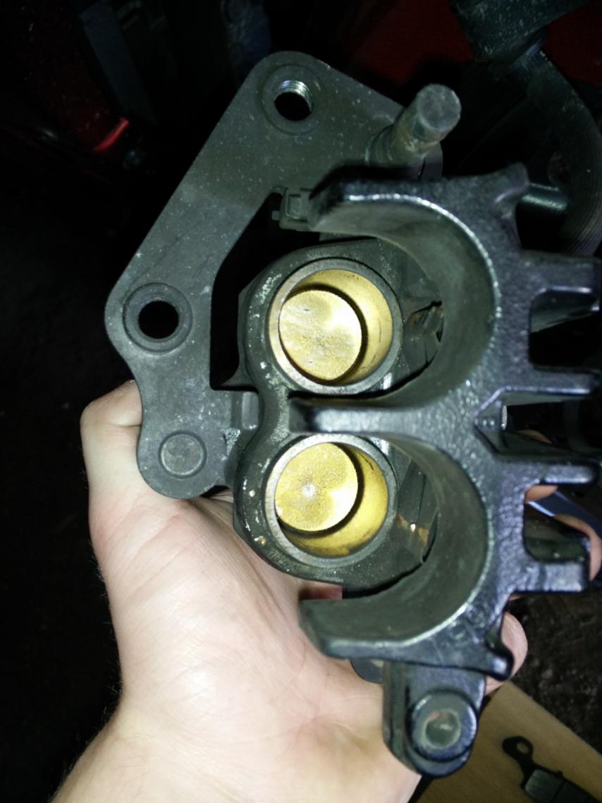 Die Staubdichtungen siehst du hoffentlich nicht. Sonst müssen die Kolben raus und neue Dichtungen rein.