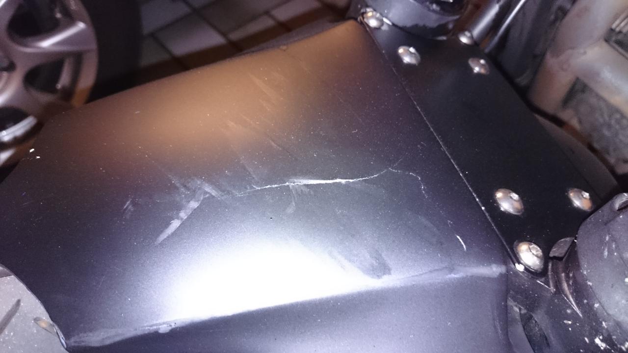Verkleben, spachteln, neu lackieren? Mit Thermoplast den Riss von hinten ausfüllen? Den Fender irgendwie "schienen"?