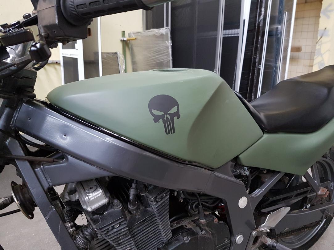 Was hat sich also in den letzten Monaten getan? Natürlich habe ich den hier bemängelten Bugspoiler tiefer gesetzt. Direkt danach gab es einen neuen Bremssattel vorne und andere Spiegel. Es gab Edelstahlschrauben für den Motor, eine neue Kupplung, einen neuen Kettensatz, die Schwingenlager wurden gereinigt und gefettet, den Umlenkhebel gab es von einer Bandit. Eine (bisher unlackierte) Sitzbankabdeckung gab es ebenfalls. Der Endschalldämpfer wurde um 10cm gekürzt, ein offener K&N Filter verbaut und das ganze mit einem Dynojet Stage 3 Kit abgestimmt. Klingt jetzt wie eine große. Die Kiste läuft deutlich besser als original, springt besser an und zieht aus dem Drehzahlkeller deutlich stärker durch. Alles natürlich im Verhältnis. Ich überlege noch, ob sich ein neuer Krümmer bzw. eine komplett andere Auspuffanlage lohnen würde, denn eigentlich möchte ich mir nächstes Jahr was größeres zulegen. Mal sehen.
