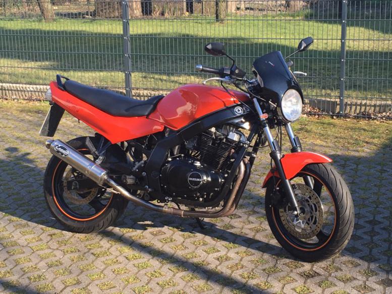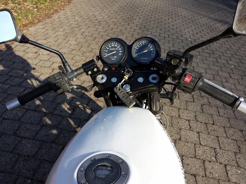Sie ist Bj 94, hat erst 37.xxxkm runter und ich fahre sie leider zu selten. Umgebaut habe ich: VVK nachgerüstet, früher war sie eine Naked, Superbikelenker Alu-Fußrasten, neuen Sitz, progressive Gabelfedern, Knöpfchenarmatur der F-Serie (die etwas runderen sind schicker) Ansonsten ist sie sehr original was ich an Ihr mag. Der Rest sind optische Spielereien. besonderes Highlight, ich habe bei Ihr einen Funk-Garagentoröffner eingebaut mit einem Drucktaster im Cockpit. So kann man elegant auf den Garagenhof rollen und das Tor öffnet schon von weiten. Sehr angenehm lg merle