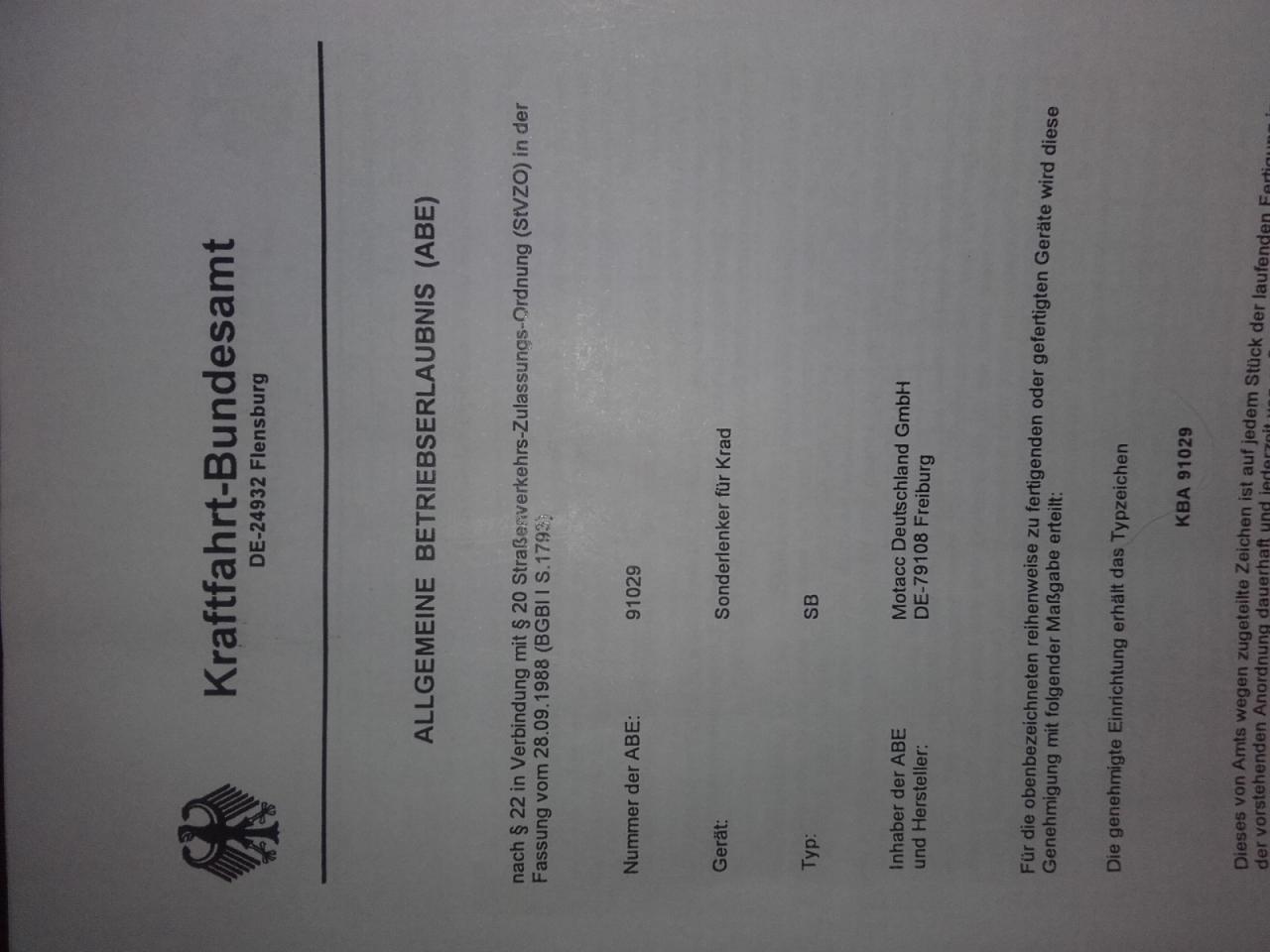Ich hab genau in der Mitte die kba Nummer für die ABE.