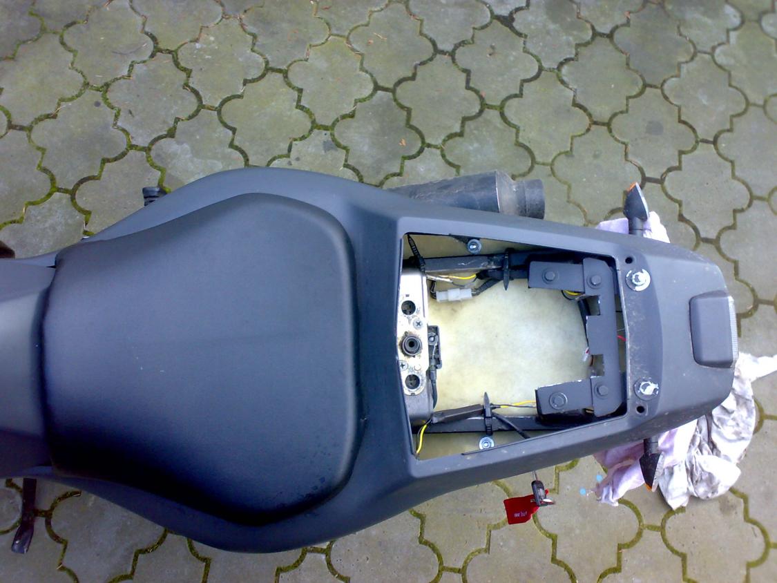 Die beiden schwarzen Imbusschrauben auf dem einen Bild ist die Halterung für das Sitzbankschloss.
