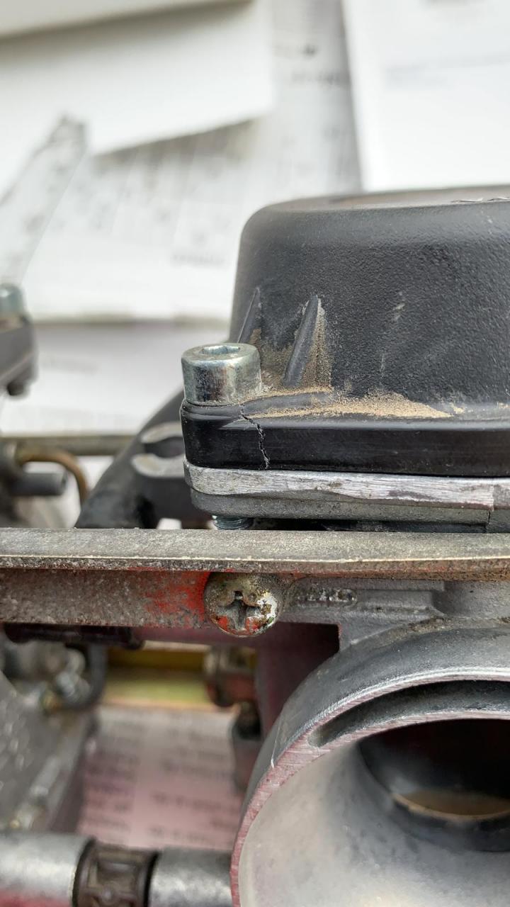 Nach langen Jahren der Enthaltsamkeit wende ich mich wieder vertrauensvoll an euch Ich wollte meine Kiste nach wirklich langer Standzeit mal wieder fahren. Sprang auch ziemlich problemlos an, doch dann tropfte Benzin. Und das nicht wenig. Es kam auf jeden Fall vom Vergaser. Da ich ihn ohnehin mal reinigen wollte habe ich ihn kurzerhand ausgebaut. Bei Louis gleich zwei Reparatursätze und neue Düsen bestellt und alles fein getauscht und gereinigt. So wie es in der Schwimmerkammer aussah war es auch bitter nötig... Jetzt zu meinem Problem: Beim auseinandernehmen sind mir zwei Dinge aufgefallen. 1.) Der schwarze Deckel von einem der Vergaser hat einen Riss. Wo bekomme ich bezahlbaren Ersatz her? 2.) Vom T-Stück sind die Dichtungen hinüber. Muss ich den kompletten Vergaser trennen und alles neu synchronisieren oder gibt es einen „Trick“ die Dichtungen ohne große Aktion zu tauschen? Synchronisieren etc. Habe ich selbst noch nie gemacht. Habe auch keinen Synchrontester parat. Ich bin für jeden Hinweis oder Hilfe dankbar. Liebe Grüße.
