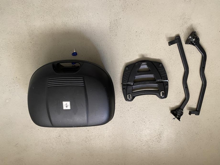 Verkauft wird ein Topcase von moto detail mit 2x Schlüssel in der Farbe schwarz + Givi Monorack Träger.