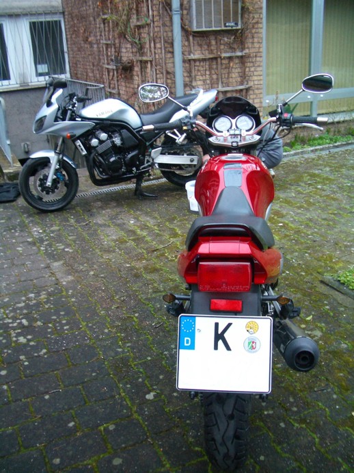 Rückansicht, im Hintergrund die Fazer von meinem Mann