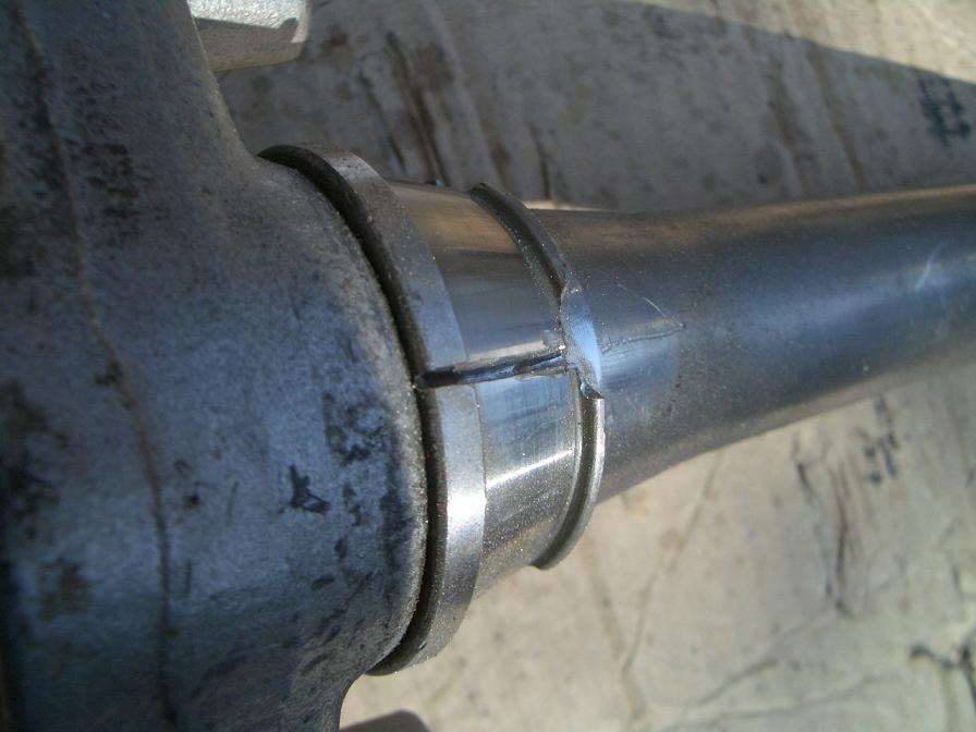 Beim Schlag auf das geschlitzte Lager sollte man unbedingt weiterhin die Schutzbrille und am besten Handschuhe tragen. Da das Teil gehärtet ist, können sich beim Schlag sehr scharfe Splitter lösen und davon fliegen. So einen hab ich mir beim Wechsel durch die Hand gejagt. Dort ist jetzt eine gut sichtbare Narbe |
