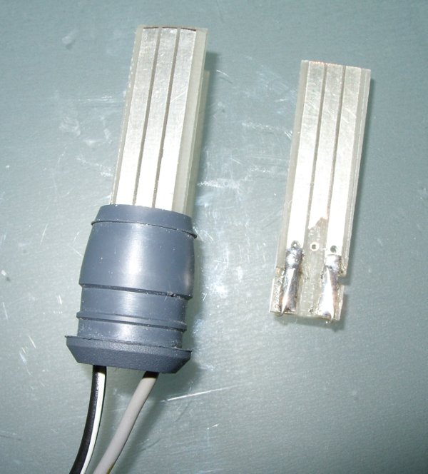 Hier sieht man den Stecker, der dann einfach in die originale Lampenfassung gesteckt wird, ist quasi der Sockel der originalen Birne an den ich den LED-Steifen gelötet hab: