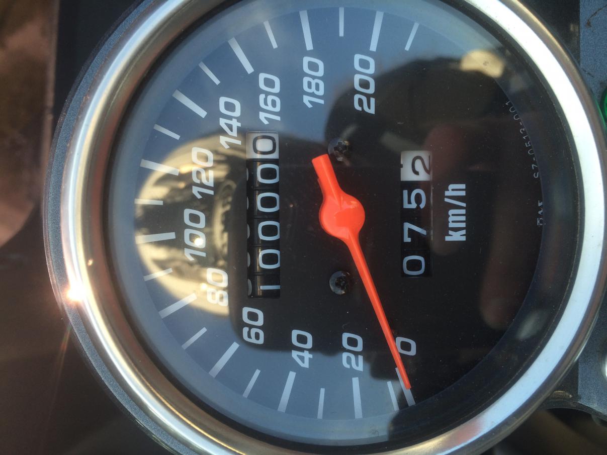 heute nach dem Essen schob ich meine ef aus der Garage, um zu einem kurzen Besuch zu starten. Dabei fiel mein Blick zufällig auf den Tacho, wo "69999,7" km stand. Da musste meine Frau auf den Soziussitz und ich drehte mit der Hand am Vorderrad die 300 Meter noch dazu. Das sah dann so wie auf dem Anhang aus ... und sie läuft, läuft und läuft ...