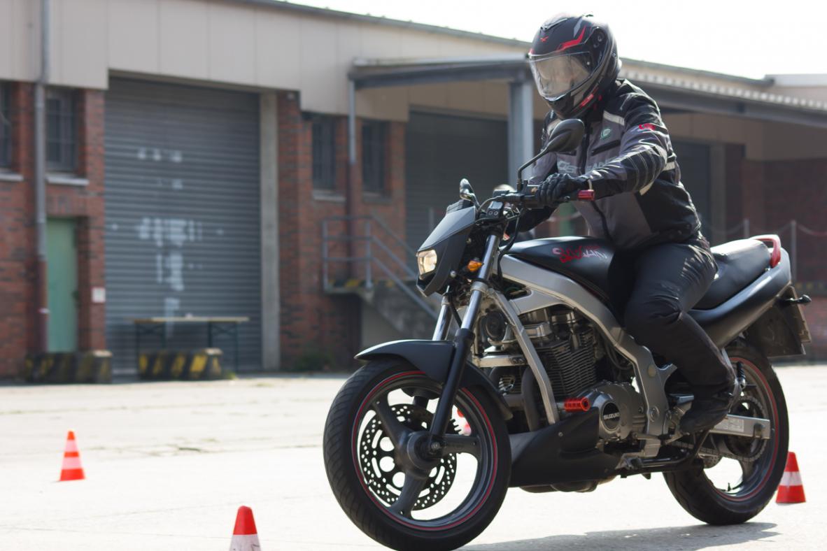 Am Anfang würde erstmal geguckt wie vertraut wir mit unseren Motorrädern sind. Heißt im stehen fahren, einhändig usw.
