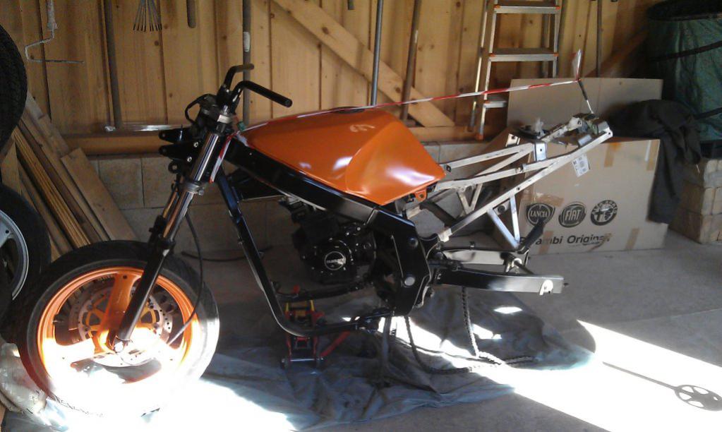 Ziemlich krasses gerät bastelst du da zu recht. Gefällt mir echt gut, vor allem das aggressive orange passt zu dem streetfighter look. bin gespannt wie sich der kackhaufen entwickelt.
