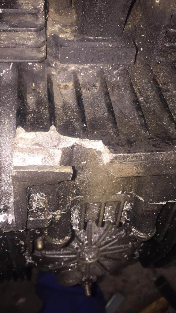 Naja was soll schon passieren ist gut, er klatscht während der Fahrt runter, weil eben nichts mehr so hält, wie gedacht. Die Geschichte mit dem halben Motor hab ich abgehakt, es kommt ein neuer, als anderer rein und gut. So weiterzufahren ist mir echt zu heiss. Schweißen geht wohl nicht, hab da mehrere Leute draufschauen lassen, aber so denn jemand besseres weiß, der Motor wäre dann demnächst übrig.