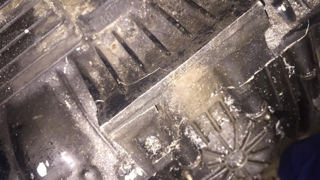 Könnte man auch mal drüber nachdenken. Motor ausbauen, Riss reinigen, verschweißen, Loch bohren und wieder einbauen. Ich würde trotzdem mal nachsehen, warum da ein Riss entstanden ist. Möglicherweise ist da etwas verzogen. Aber, wenn du günstig einen Gebrauchtmotor bekommst, ist das auch gut.