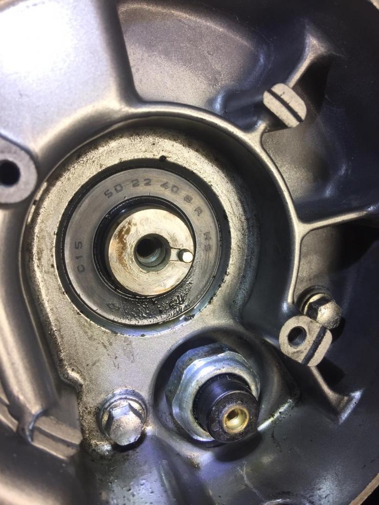 Um die Zündplatte zu demontieren, muss zuerst die Geberplatte runter (das "verrostete" Ding in deinem 1. Bild). Dazu muss die kleine Schkantschraube gelöst werden (an der großen Sechskantmutter muss man dazu gegenhalten). Ist normales Rechtsgewinde, wird aber möglicherweise schwer gehen, da meist eingeklebt. Dann kann man die Zündplatte (Kreuzschlitzschrauben ) abschrauben. Da auch diese Schrauben meist eingeklebt sind, sollte man das mit einem Schlagschrauber machen. Dann kommt man zum Simering und sieht ob es da ein Problem hat. Notfalls tauschen (22x44x8 ) - sollte von aussen möglich sein (hab ich auch noch nie gebraucht) Der Öldrucksensor lässt sich mit einem Steckschlüssel aufdrehen. Der Sensor sollte selbstdichtend sein. Wenn das nicht geht, dann eine dünne Kupferscheibe beilegen. Bei den kleinen M6 Motorgehäuseschrauben darf nichts rauskommen - die sollten nicht ölberührend sein (ausser es gibt wo einen Gehäuseriss oder eine der Motorgehäusedichtungen ist gerissen (beider ziemlich unwarscheinlich). Hier kannst du dir die Einzelteile ansehen: https://alpha-sports.com/suzuki_part...q=suzuki-parts Du solltest dir das Suzuki-Servicemanual zulegen. Vorsicht beim Wiederfestschrauben der Geberplatte: Drehmoment einhalten: 17-23Nm Für den Sensor gibts keine Angabe - würde hier aber ca. 10-15Nm nehmen. |