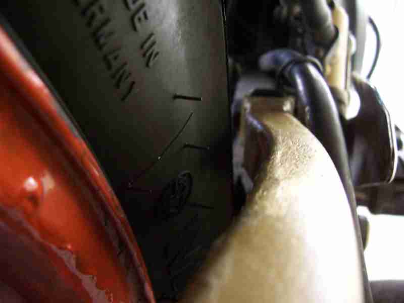 Rechts hat der Auspuff aufgesetzt und trotzdem sind hinten noch gut 5mm unbenutzter Rand, den er einfach phsyisch nicht benutzten KANN, eben durch die Ballonform.
