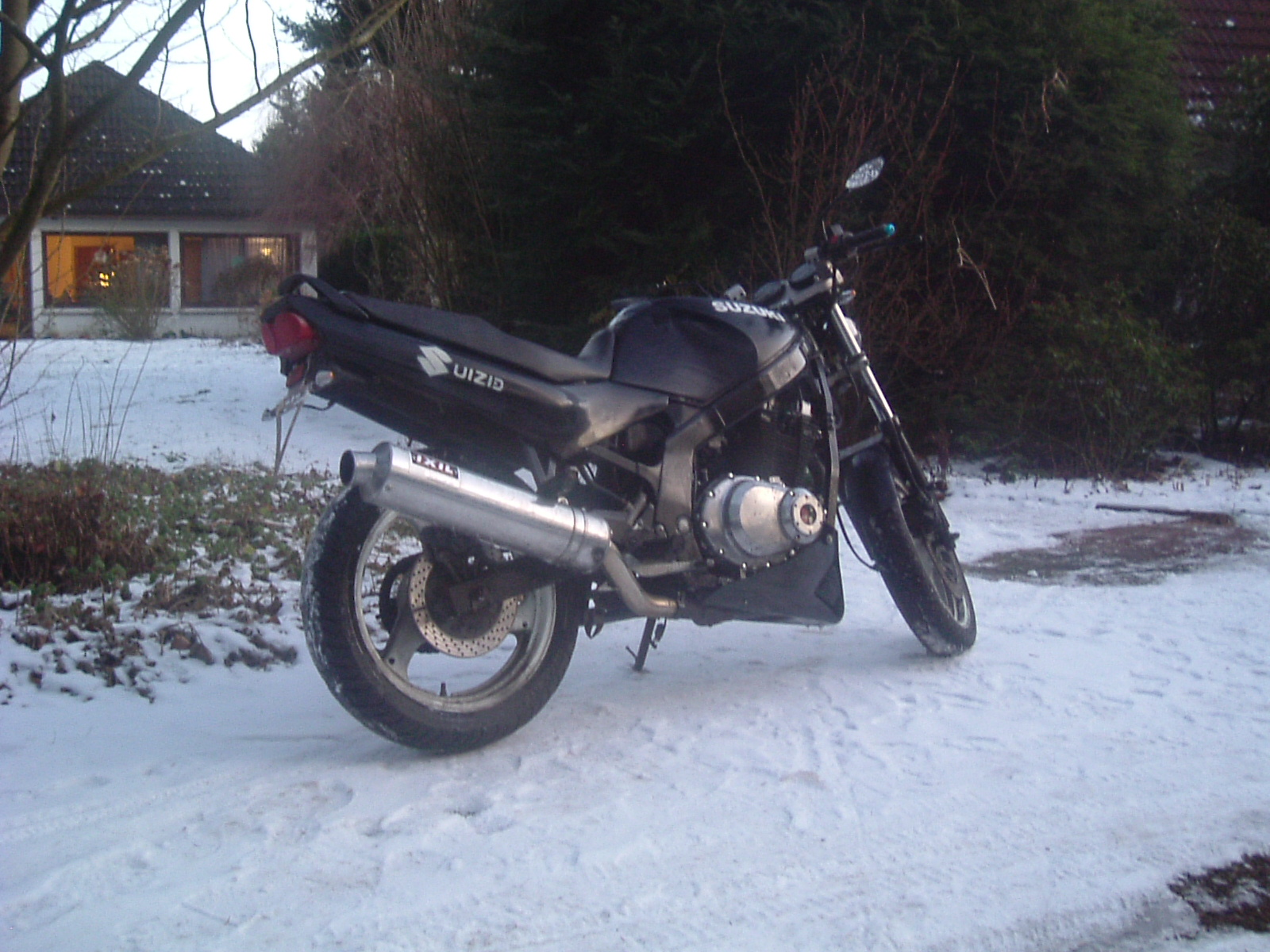 ich hab mir vor knapp 1 Jahr, direkt nach dem Führerschein, eine GS Baujahr 94 zugelegt. eigentlich hab ich mir gedacht das ich die GS nicht umbauen will und sie nur 2 Jahre lang "totfahren" will , dafür war sie mir dann aber doch zu schade und sie musste ein bissel verändert werden (nachdem ich so schöne Maschinen hier im Forum gesehen habe.. [attachment=8:mokbwpm4]DSC00030.JPG[/attachment:mokbwpm4] da ich leider keine Bilder vom Umbau gemacht habe, kann ich nur Bilder zeigen wie sie jetzt aussieht .. [attachment=7:mokbwpm4]15102008155.jpg[/attachment:mokbwpm4] [attachment=6:mokbwpm4]15102008156.jpg[/attachment:mokbwpm4] [attachment=5:mokbwpm4]15102008157.jpg[/attachment:mokbwpm4] [attachment=4:mokbwpm4]15102008158.jpg[/attachment:mokbwpm4] was schon gemacht wurde: -neue Frontscheinwerfer -neuer Auspuff von Ixil. -LED miniblinker und neue Spiegel. -komplett neue Lackierung . -neues Rücklicht und Tankpad. -Bugspoiler von Gimpel.. noch neu gemacht -neuer motor/Kupplungsdeckel -edelstrahl Kennzeichenhalter -Bandit 600 Federbein - neue Sitzbank -ich hoffe ich hab nichts vergessen.... [attachment=3:mokbwpm4]DSCF3043.JPG[/attachment:mokbwpm4] [attachment=2:mokbwpm4]DSCF3067.JPG[/attachment:mokbwpm4] [attachment=1:mokbwpm4]DSCF3047.JPG[/attachment:mokbwpm4] [attachment=0:mokbwpm4]DSCF3046.JPG[/attachment:mokbwpm4] eigentlich ist sie noch nicht fertig ... da ich mir jedoch jetzt eine neue zulegen werde muss diese weg mfg Tobi |