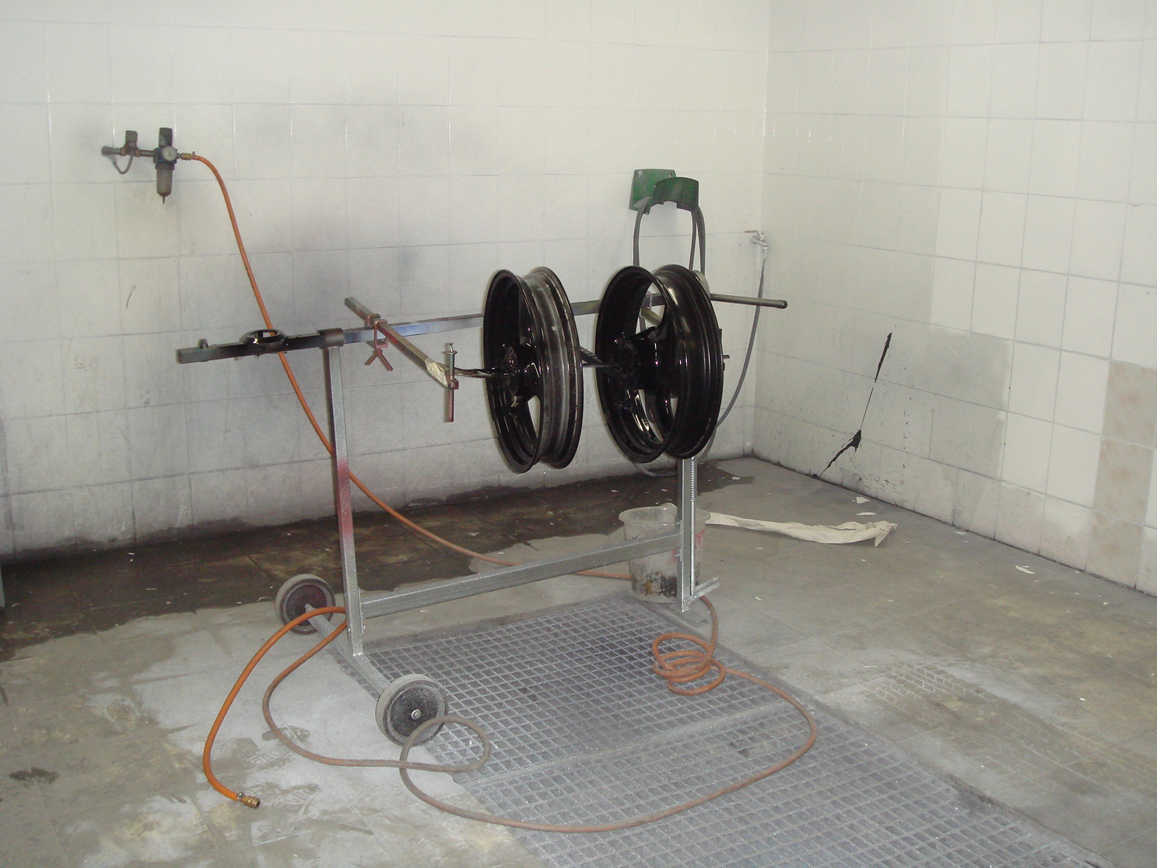 die felgen sind mittlerweile lackiert in der farbe schwarz. (farbcode PXR con Chrysler, welches schön silbern schimmert) der rahmen und die anderen teile sind gefüllert, geschluffen und abgedeckt und am montag wird das mopped in die lackierbox geschoben (steht grad auf nem rollbrett ) hier werd ich wieder ne chrysler farbe nämlich PS2 nehmen das ist ein sehr schönes silbernatürlich halt ich euch am laufenden