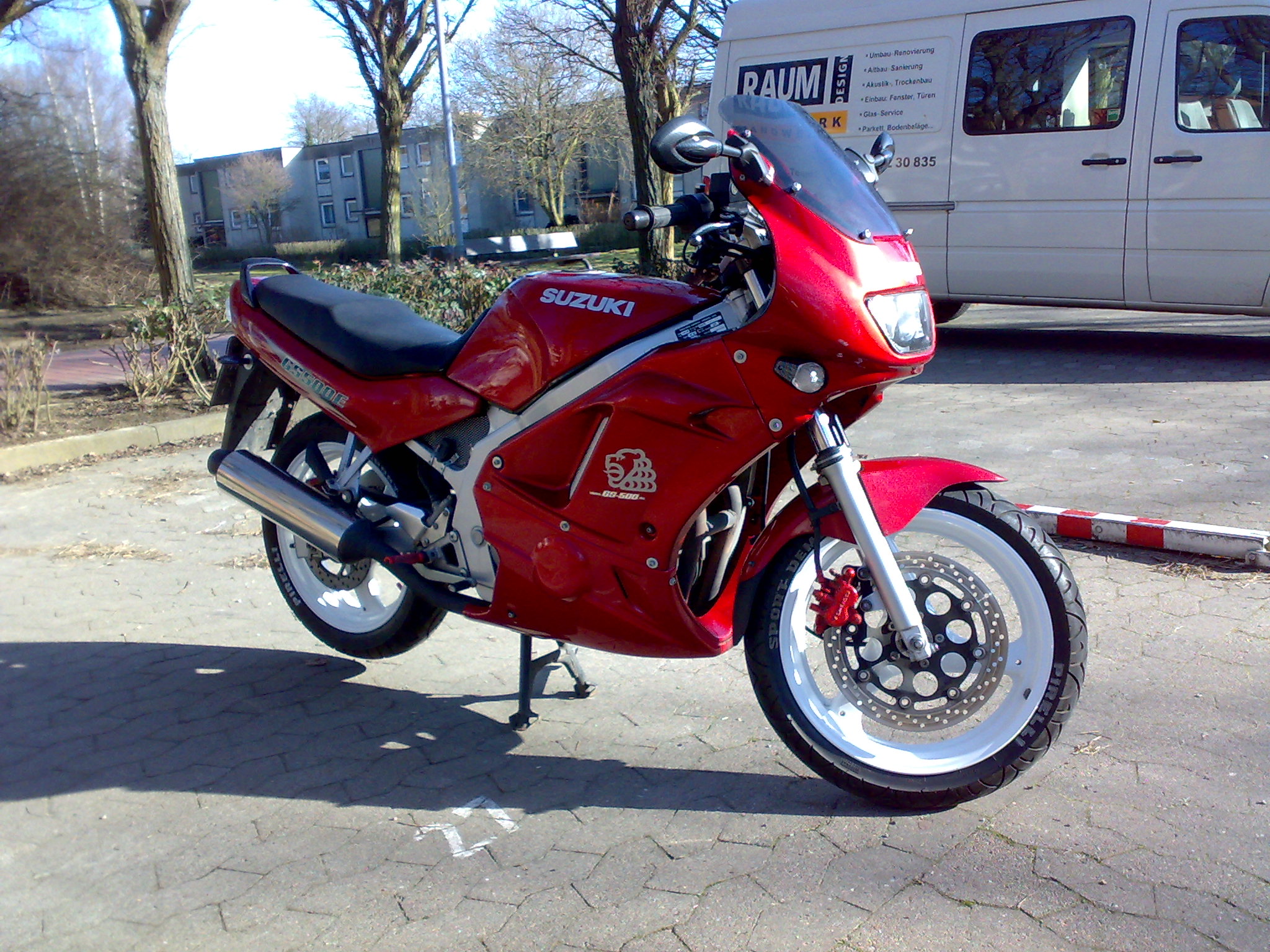 ahaa die gixxerverkleidung macht sich garnichmal schlecht an der kleinen gs....abe mir gefalln einfach naggiche mädels..äh bikes